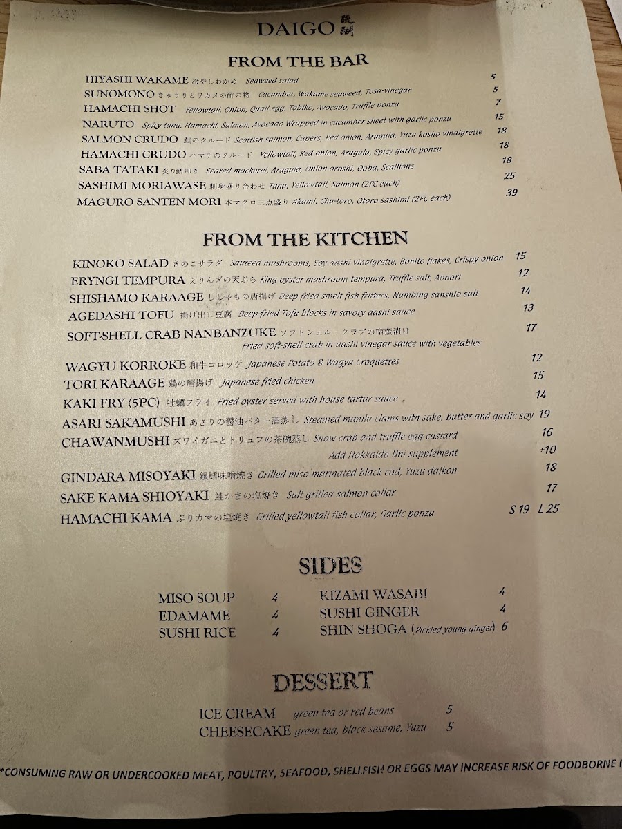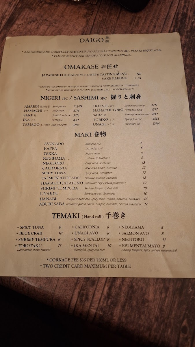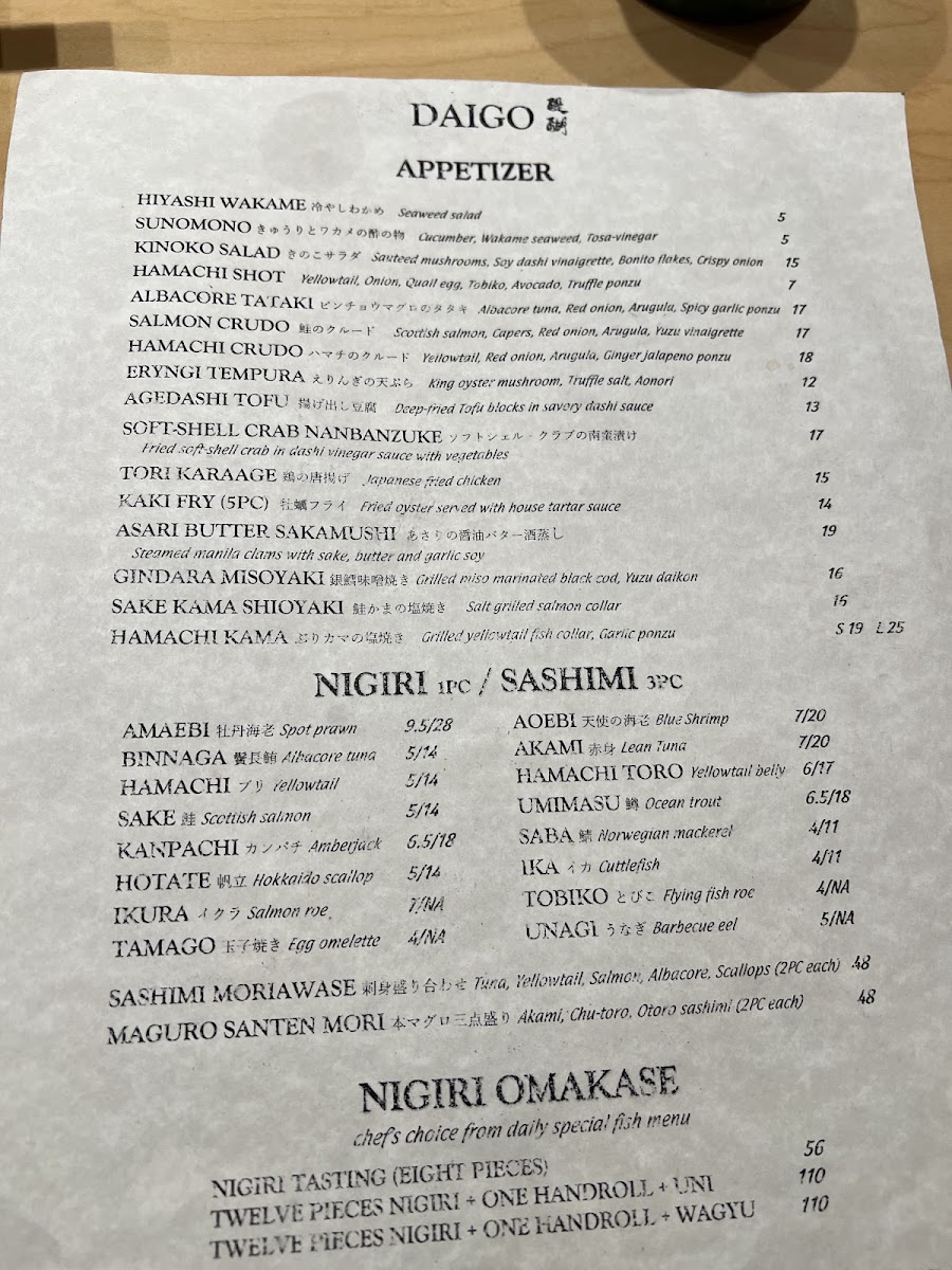 Daigo Menu